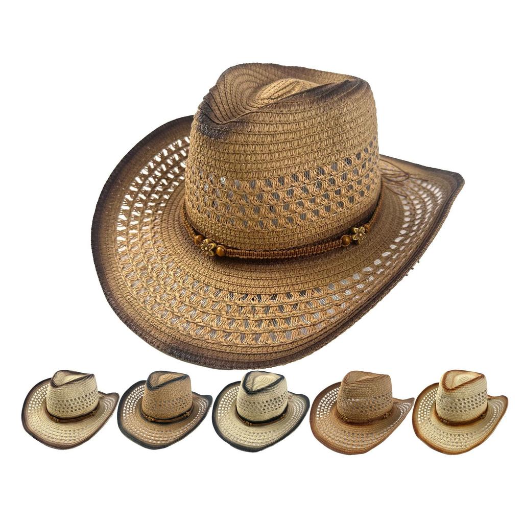 New Western Denim Straw Hat Retro Ethnic Style European And American Jazz Hat Outdoor Leisure Top Hat Curved Brim Hat