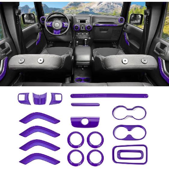 18PCS Full Set Interior Trim Kit For Jeep Wrangler JK JKU 2011-2018 4 Door,Center Console Door Handle Side Outlet Cup Holder Gear Cover Trim (Purple)