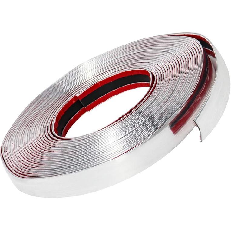 QWORK 1" Wide 40 Feet Chrome Molding Trim, Car Auto Truck Side Exterior Edge Lip Protect Sticker DIY Exterior Decoration For Bumper Door Guard