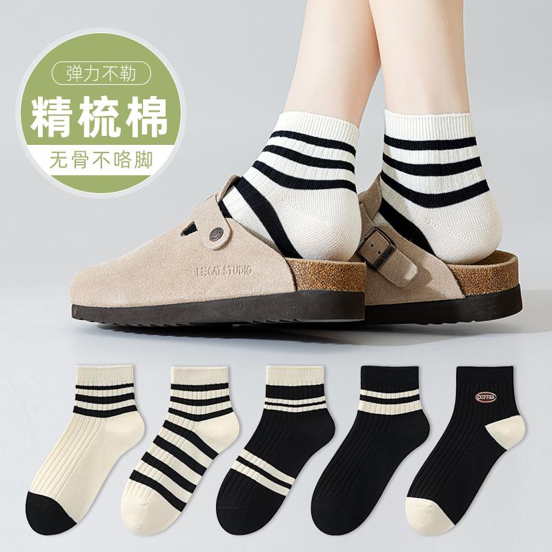 Socks Season Short Socks Maillard Double-Needle Cotton Socks Imitation Hand-Sewn Versatile Socks