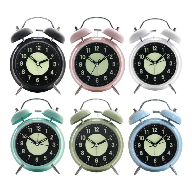 Heavy Sleepers Alarm Clock Green Fluorescent Display Quiet Mechanism Twin Bells Nightlight Included Bedroom Table Clock