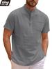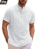 Summer New Men's Lightweight Cotton Linen Short Sleeve Henley Neck T-shirt - Breathable Casual Basic Style Solid Color Tops