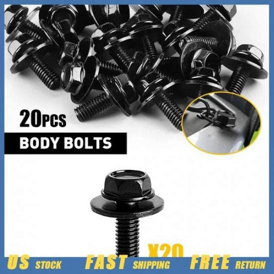 20PC Bolts Body Screws Fastener M6-1.0X Fender 16Mm Long- 10Mm Hex- 17Mm Washer