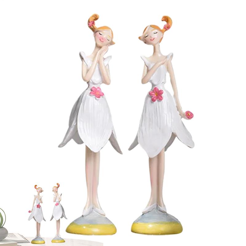 Girl Figurines Decor Resin Craft Statues Sculpture 2Pieces Girl Table Decor Elegant Small Figurines Ornaments Hand-Painted Home