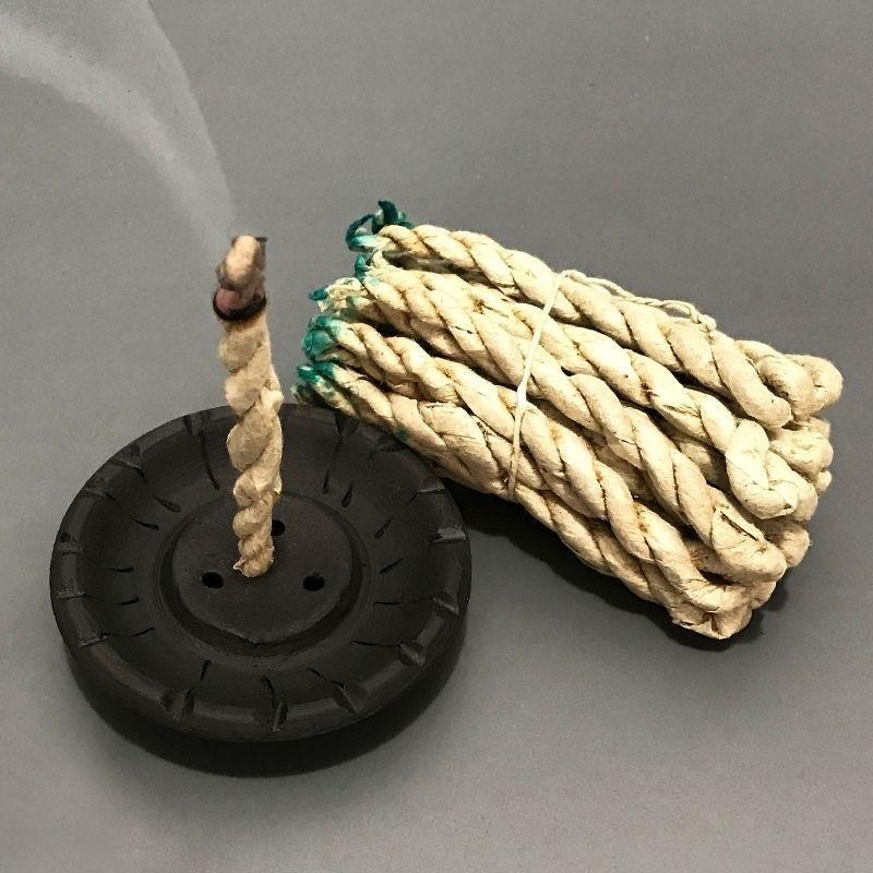 White Sage Rope Incense and Incense Holder Set Nepalese Traditional Incense for Therapy Meditation Ceremony
