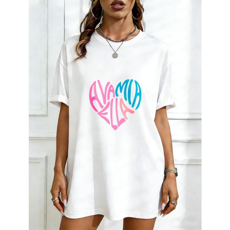 Oversized T Shirt Black Avamia Bella Heart Graphic Print Casual Streetwear Fashion Top For Women Summer Outfit