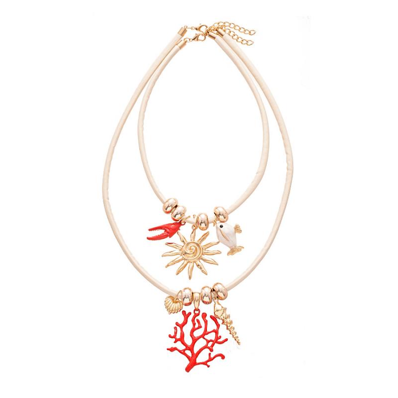 2Pcs/Set Boho Coral Sun Shape Pendant Necklace for Women Punk Round Bead Jewelry Accessories Gifts