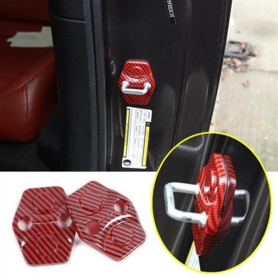 For 2012- Dodge Challenger Red Carbon Fiber Car Door Lock Decor Cover Trim2*