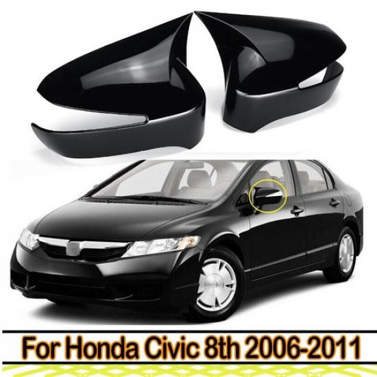 For 2006-2010 2011 Honda Civic Gloss Black Side Rearview Mirror Cover Trim Caps