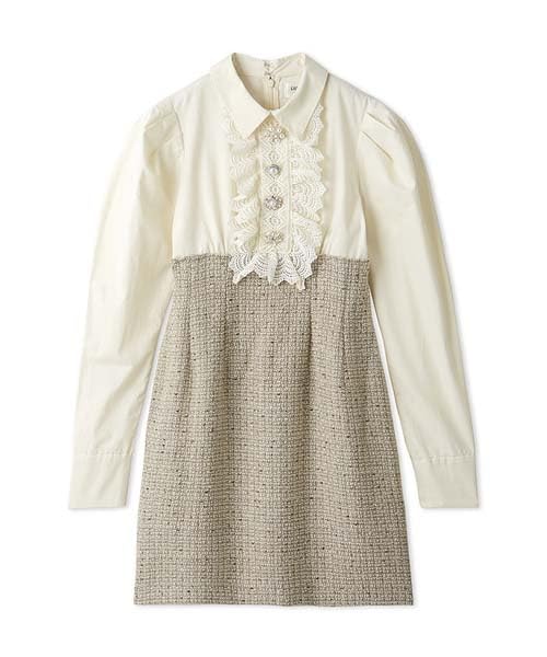 Lily Brown CANDY STOCK Front Beaded Dress L.B. Two-Tone (LWFO244812) Women's (BEG)