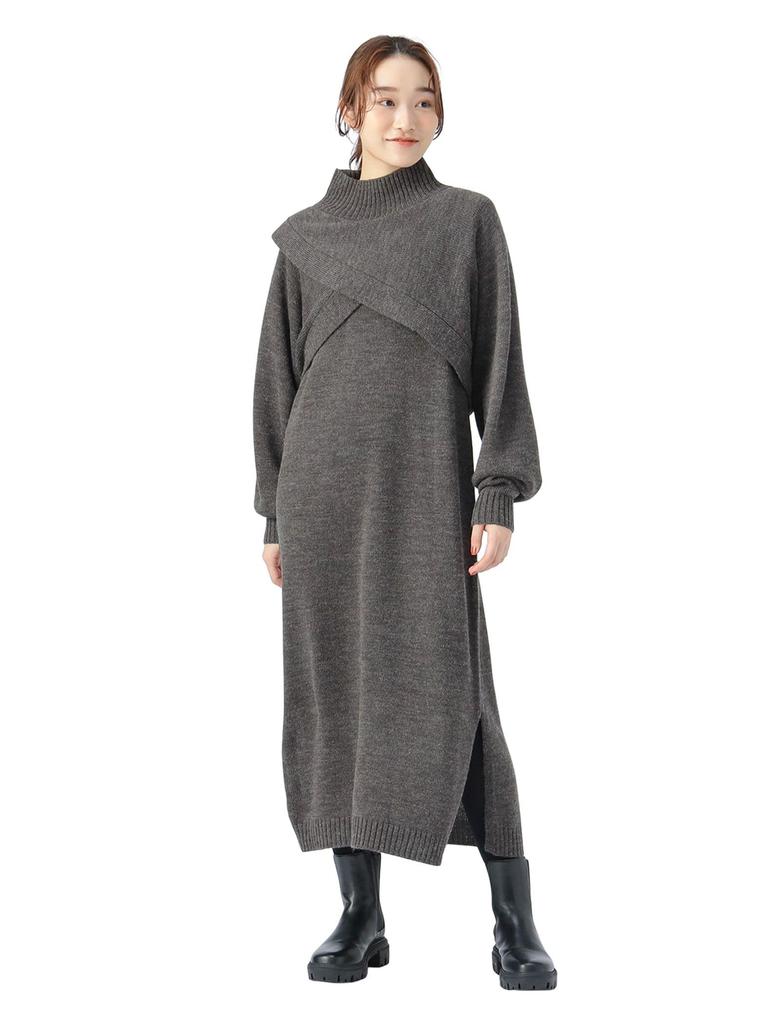 Beams Heart Layered Knit Dress Charcoal One Size (Set Item) Women's