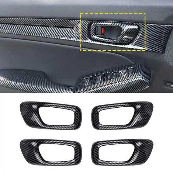 Inner Door Handle Bowl Panel Cover 4* For Honda Civic - ABS Carbon Fiber