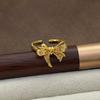 Sweet And Cool Girl Style Gold Bow Enamel Diamond Zir*****Pen Ring Niche High-End Feeling Stacked Ring Woman