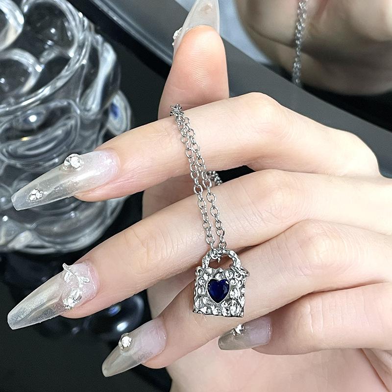 Lockhead Niche Design Blue Love Zircon Necklace French Irregular Metal Folds Premium Sense Clavicle Chain Female