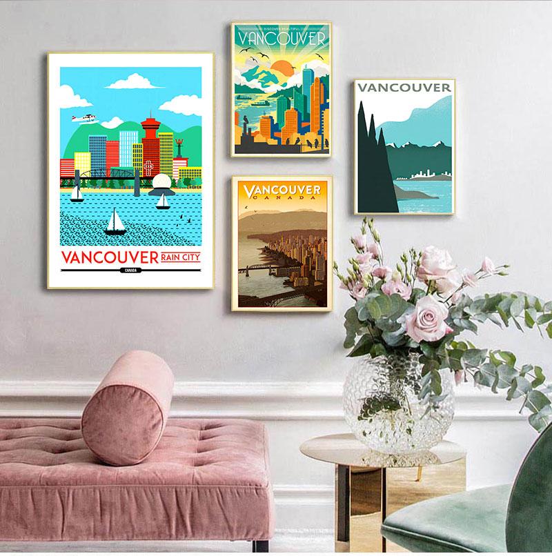 Rain City Canada Vancouver Map Vintage Retro Travel Classic Canvas Paintings Kraft Posters Wall Stickers Home Decor Family Gift No Frame