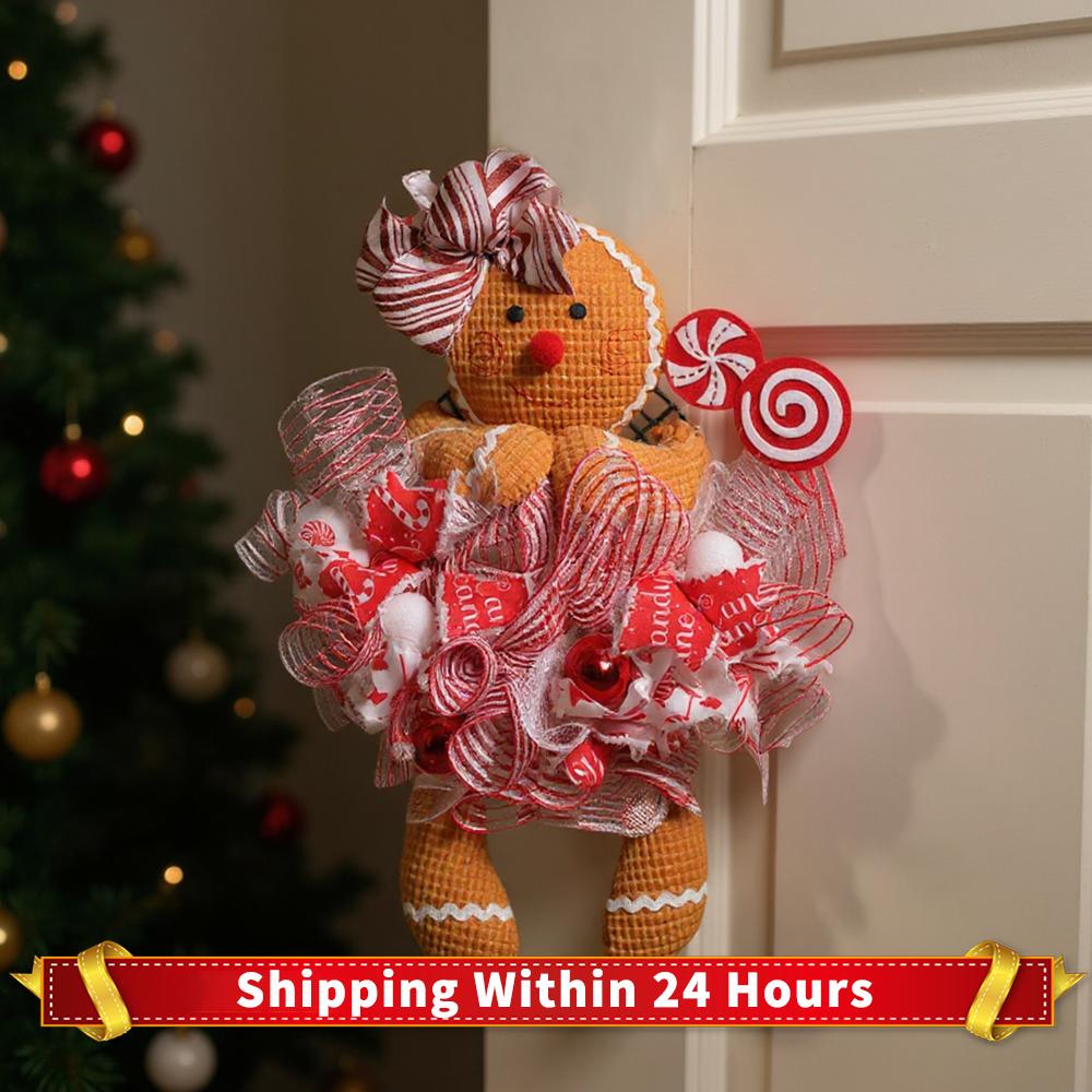 Gingerbread Man Doll Christmas Wreath Decoration Ornaments Holiday Front Door Hanging Wreath Xmas Party Home Garland Decor