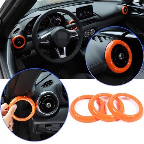 Orange ABS Inner Dashboard Air Vent Trim Cover Ring For Mazda MX-5 Miata 2016-23