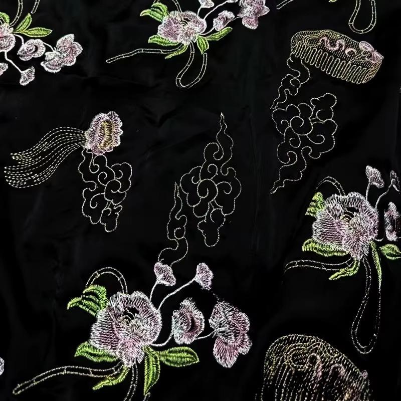 50cm/100cm*130cm Floral Pattern Black Color Velvet Embroidered Jacquard Fabrics for Sewing Cheongsam Dress Clothing
