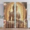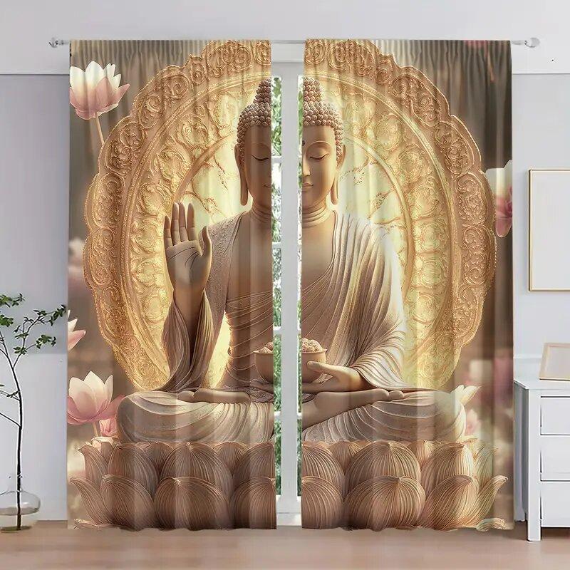 2pcs - A Buddha Statue with a Golden Background Print Curtains, Pole Bag Curtains, Home Decoration, Room Decoration