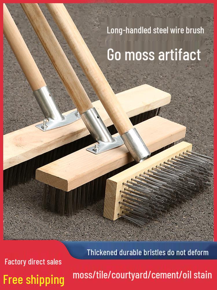 Stainless Steel Long Handle Wire Brush: Stiff Bristles for Scrubbing Tile, Cement, Moss, Rust Removal, and More