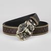 Western Cowboy Leather Belt with Bull Head Buckle, Rivet & Embossed Retro Style for Young Men