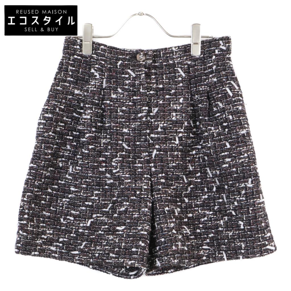 material1: rhinestone COCO button tweed wide-leg shorts