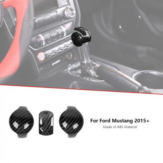 Carbon Fiber ABS Gear Shift Knob Cover Decor Trim Bezels For Ford Mustang 2015+