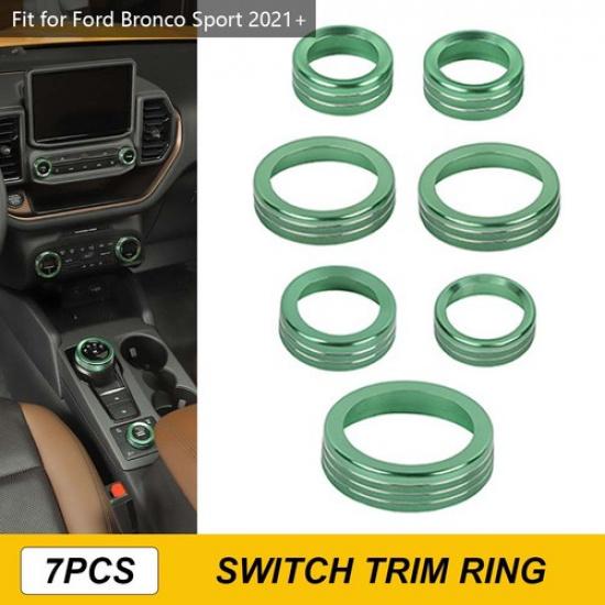 7x Green AC Radio 4WD Switch Ring Covers For Ford Bronco Sport + Accessories