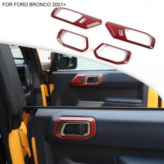 4x Inner Side Door Bowl Handle Trim Cover for Ford Bronco + Red Carbon Fiber