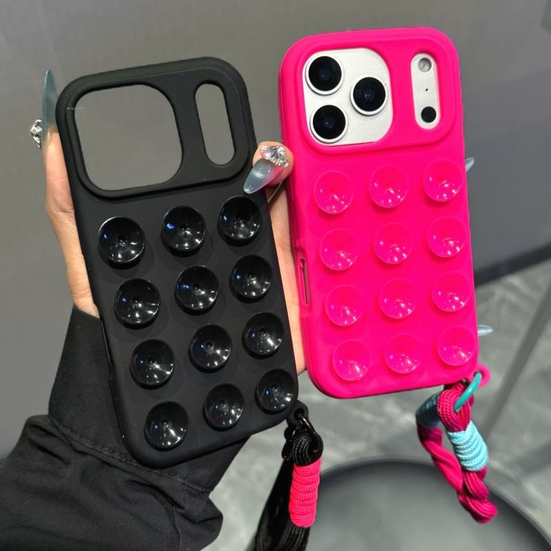 Candy Color Suction Cup Phone Case For iPhone 16 17 Air 11 15 14 12 13 Pro Max Anti-Slip Silicone Sucker Pad Lanyard Strap Cover