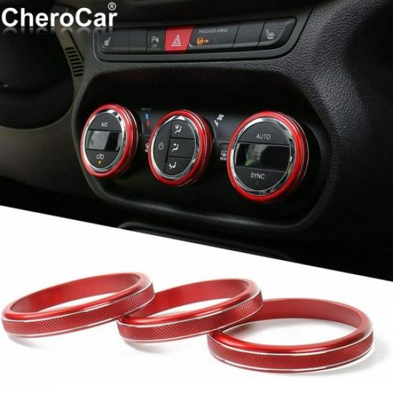 3X Red Air Conditioner Switch Knob Cover Trim Ring for 2015-2017 Jeep Renegade