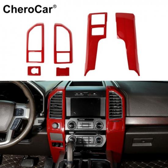 6Pcs Red Car Dash Navigation Frame Decor Cover Trim Bezel For Ford F-150 2015-20