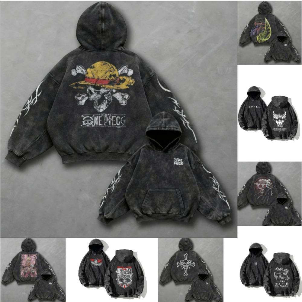 Autumn Anime Print Vintage Hoodie Men Women Pullover Sweatshirt Oversized Long Sleeve Top Harajuku Streetwear