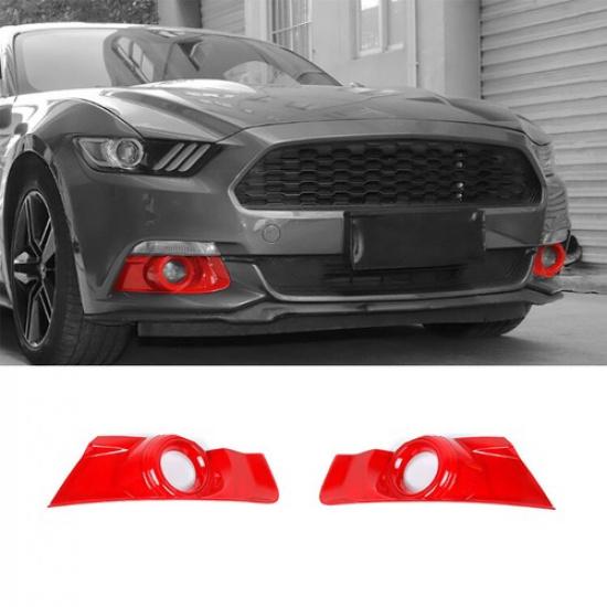 2x Exterior Red Front Fog Light Lamp Panel Cover Bezels For Ford Mustang 2015-17