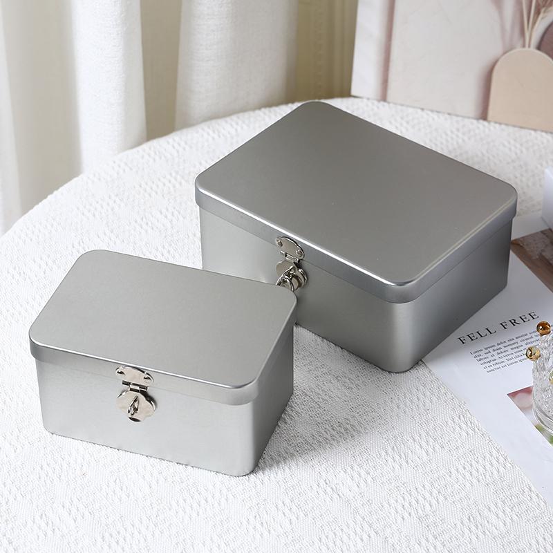 Silver Lockable Tin Storage Box Multifunctional Desktop Storage Box Metal Box Jewelry Storage Empty Box
