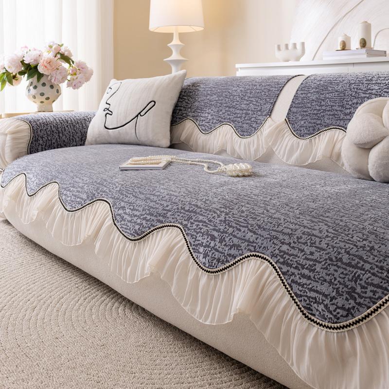 Cream Style Sofa Cushion Seasonal Universal Chenille Anti Cat Scratch Cover Cloth Skirt Edge Non-slip Cushion for Living Room