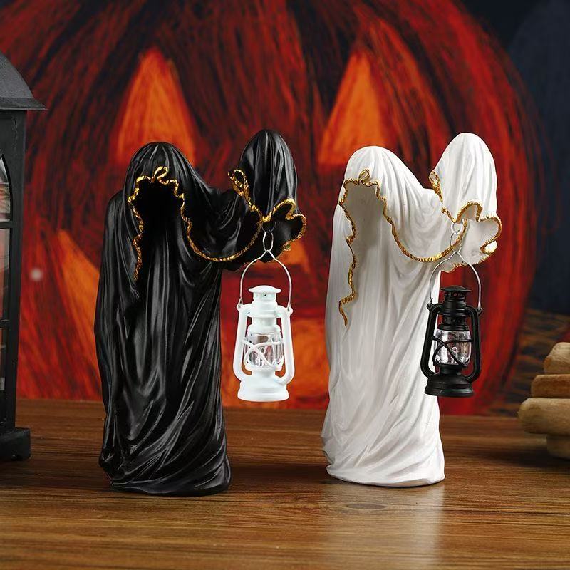 Ghost Wizard Lantern Figurines Dark Mysterious Home Decor Halloween Creative Props Scary Sculptures for Spooky Atmosphere