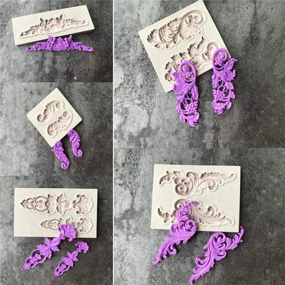 DIY Cake Border Frame Silicone Molds 3D Baroque Scroll Relief Flower Wedding Fondant Decorating Molds