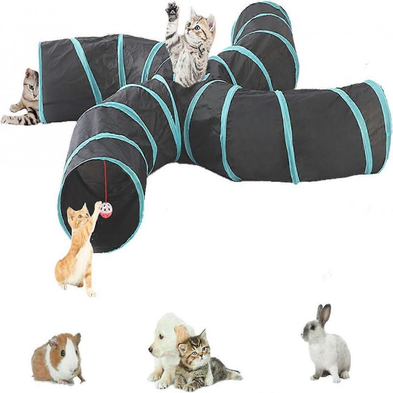Interactive, Foldable And Lightweight 5-Tunnel Maze In Crinkle Fabric With Pom Pom And Bells For Cats, Small Rabbits, Kittens, Puppies, Ferrets Or Gui