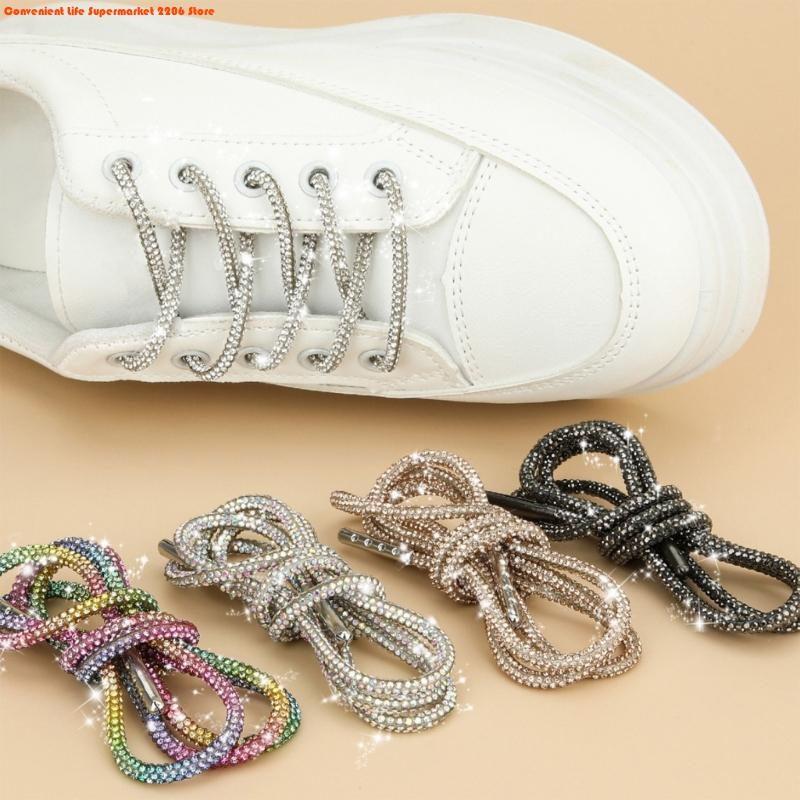 2Pcs Rhinestones Shoelaces 140cm Glitter Round Laces Shining Crystal Shoe Lace Strings Drawstring Cords Replacement