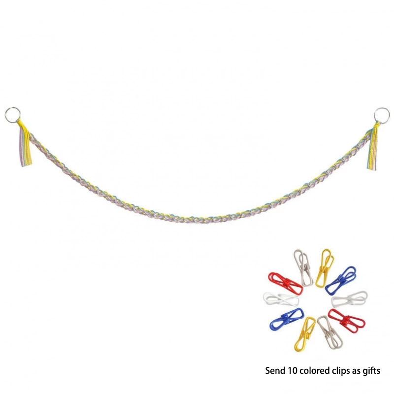 Handwoven Pet Toy Storage Rope With 10 Colorful Clips Multifunctional Hanging Organizer For Party Wall Decor Photo Display Stuffed Animal Storage