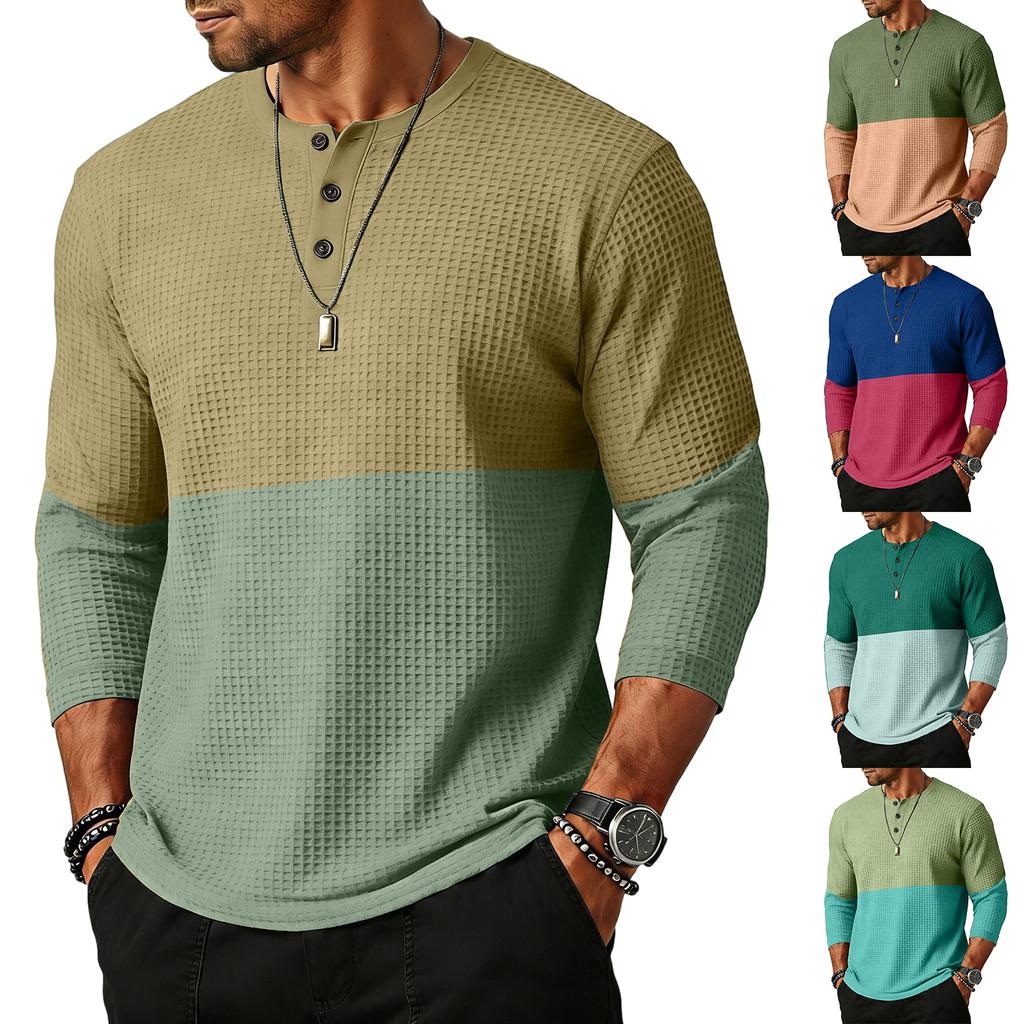 Men's Sports Leisure Waverg Three Pieces Buckle Seven Points Sleeve T-Shirt