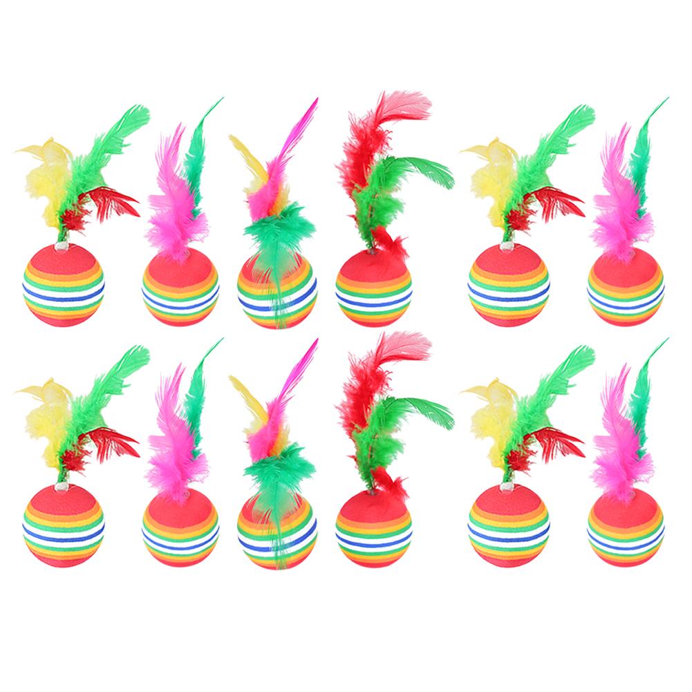 12pcs Kitten Colored Rainbow Toy Balls Lovely Teasing Toy Soft Light and Non-toxic Super Cute Beautiful with Feather for Cats