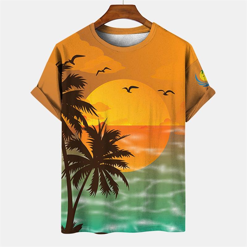 3D Printed Men's Hawaiian Beach T Shirt Summer Casual Short Sleeve Round Neck Tshirts Tops Palm Tree Graphic Tee Shirts
