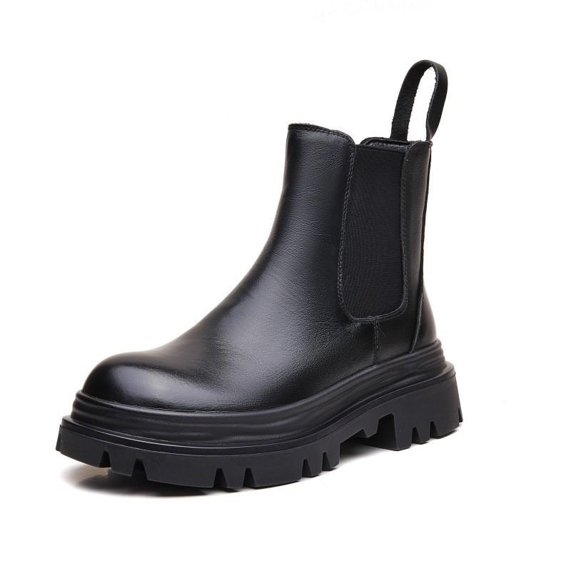 Short Boots Women's Leather Thick-soled Ins Cigarette Boots Chelsea Women's New Year-old High and Thin Martin Short Boots