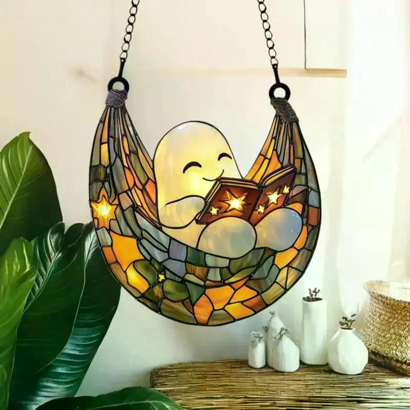 Colorful Shadow Window Suncatcher for Halloween Featuring Acrylic Ghost Reading Design
