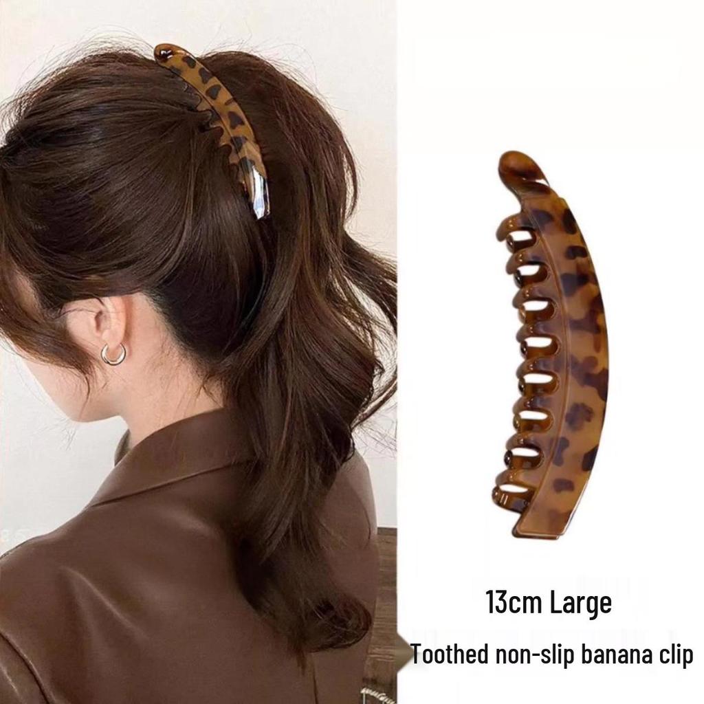 Leopard Print Non-Slip Vertical & Horizontal Banana Hair Clip for High Ponytail & Large Volume Styles