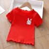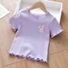 Summer Embroidered Ice Silk Ruffle T-Shirt for Little Girls