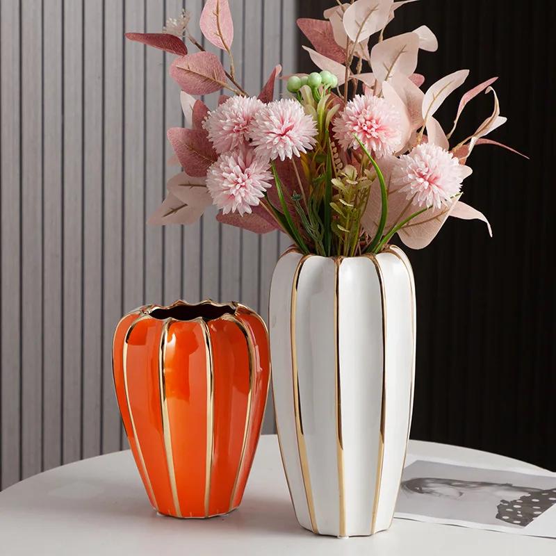 Luxury and High-end Gold Painted Ceramic Vase Flower Arrangement Simulation Living Room Decoration Home Decoration TV Cabin