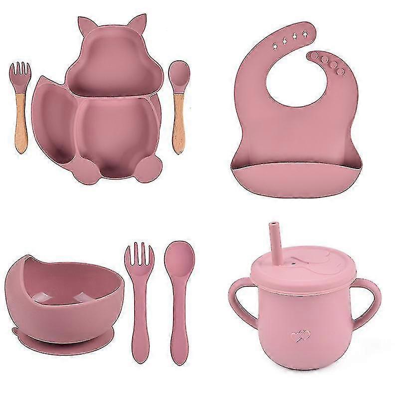 8pcs Baby Feeding Set Children Silicone Non Slip Bpa Free Tableware Set